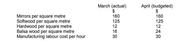 Unit cost data is expected to be the same for April as it was in March for labour and all materials except Balsa wood where a change in supplier has resulted in a cost increase of 50%. Detailed cost data is as follows: