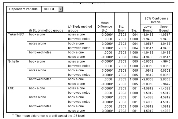 A researcher wanted to investigate whether the type of reading/studying material university students use impacts their overall academic achievement. Below the output from ANOVA analysis is illustrated, followed by Post-Hoc Tests. You are asked to: