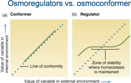 Figure 2.7 Changeininternalosmoticconditionswithexternalvariablesin osmoconformers and osmoregulators
