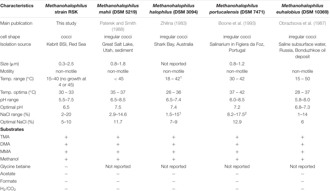 - Guanetal.,ComparativeGenomicsoftheGenusMethanohalophilus,Including a Newly Isolated Strain From Kebrit Deep in the Red Sea,Frontiers in Microbiology, vol. 10, Apr. 2019, doi: https://doi.org/10.3389/fmicb.2019.00839.