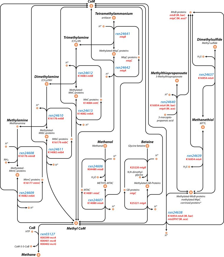 - P. Bueno de Mesquita, D. Wu, and S. G. Tringe, Methyl-Based Methanogenesis:anEcologicalandGenomicReview,Microbiologyandmolecular biology reviews: MMBR, vol. 87, no. 1, p. e0002422, Mar. 2023, doi: https://doi.org/10.1128/mmbr.00024-22.
