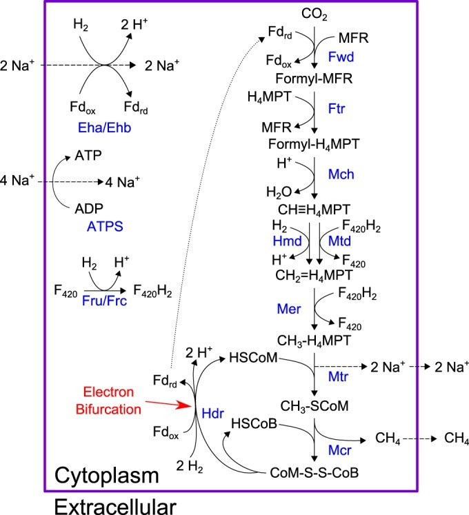 Figure 2.18 Steps involved in hydrogenotrophic methanogenesis