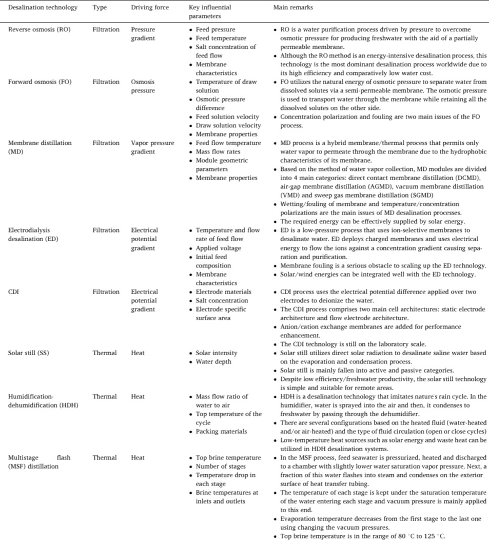 Figure 2.1 Desalinationtechnologies analysed using data-driven methods