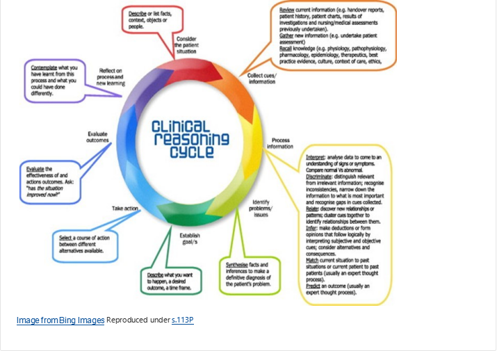 Familiarise yourself with the clinical reasoning cycle outlined by the School of Nursing and Midwifery, Faculty of Health, University of Newcastle (2023) .