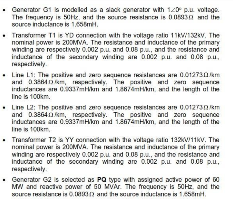 Parameters of the power network The parameters of the components in the power network aforementioned are provided as follows:
