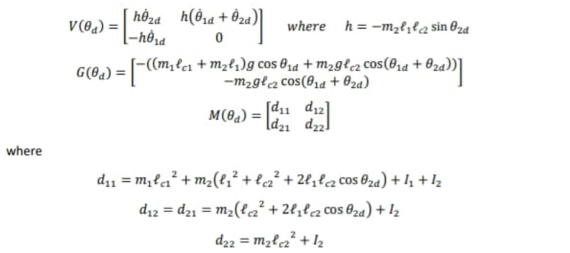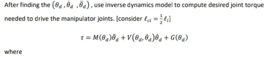 - Desired Joint angles, joint velocities and joint accelerations