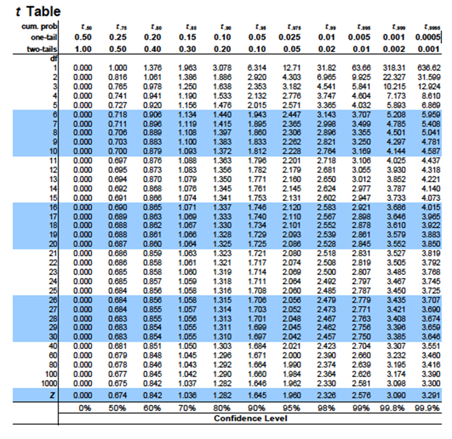 - Using the table, indicate if the experiment's outcome is statistically significant for a one-tailed test.