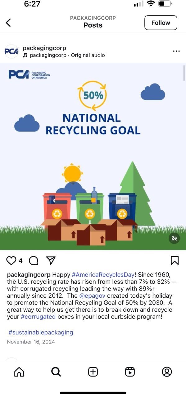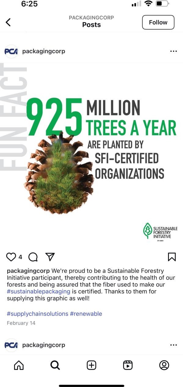 How do Avery Dennison and Packaging Corporation of America use Instagram to communicate sustainability and innovation?
