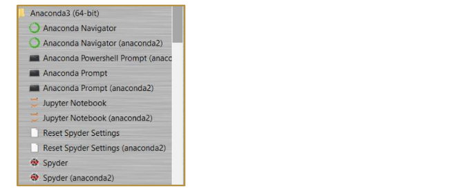 5. Once installed, your Program menu will look something like the following. The only difference is that I have different versions of Anaconda installed side-by-side, so you wont have as many icons as here: