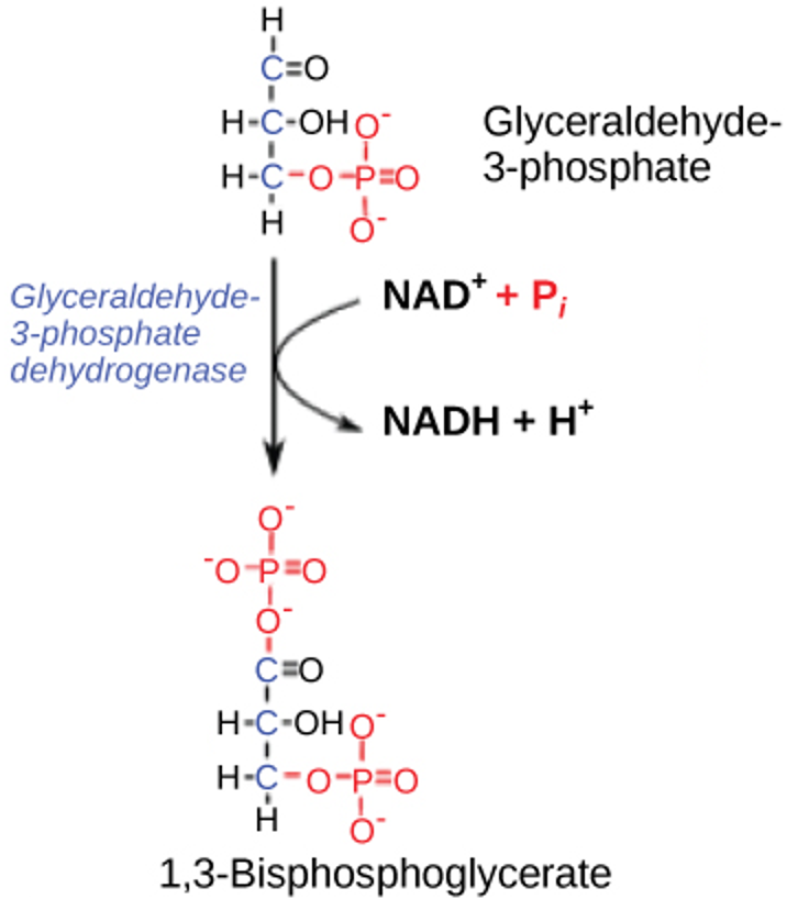 Consider the following reaction in which glyceraldehyde-3-phosphate is converted to 1,3-bisphosphoglycerate.