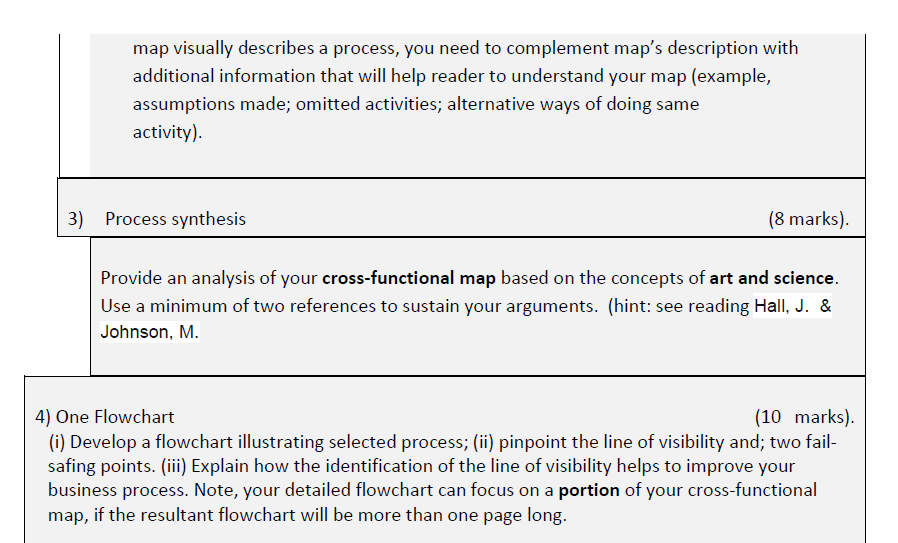 Organisations create goods and services through business processes. In this assignment you will put into practice (and simultaneously learn-by-doing) what you have learned about business process mapping and business process analysis (Topics 1 to 6). This includes drawing and analysing Business Process (BP) maps.
