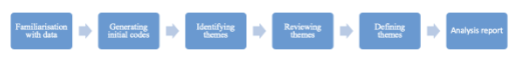 After the interviews, the obtained verbal data was transformed into written data through transcription, then the data was structured and coded, following a thematic analysis (Braun & Clarke, 2006) as outlined in Figure 3. The initial generation of codes followed a deductive approach as codes were identified in connection to R1. After initial themes were identified and relationships were established, the data was reviewed, following an inductive approach to identify new themes that did not relate back directly to R1. Subsequently themes were defined and an analysis report produced (see Chapter 4. Findings).