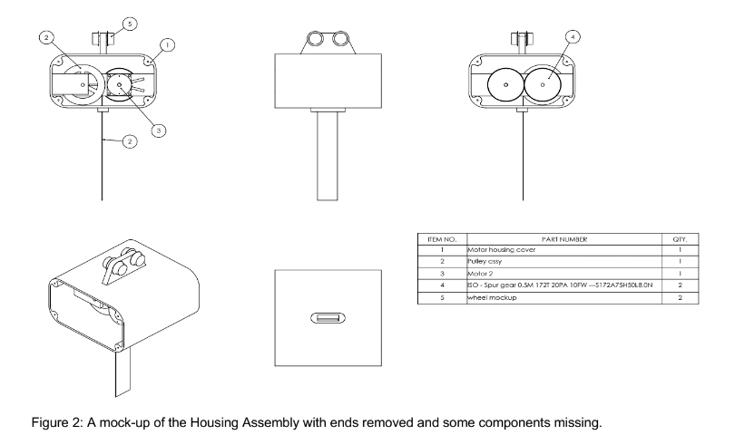 This is in a housing that contains a motor and a gearbox that drives a pulley. This is show in Figure 2.