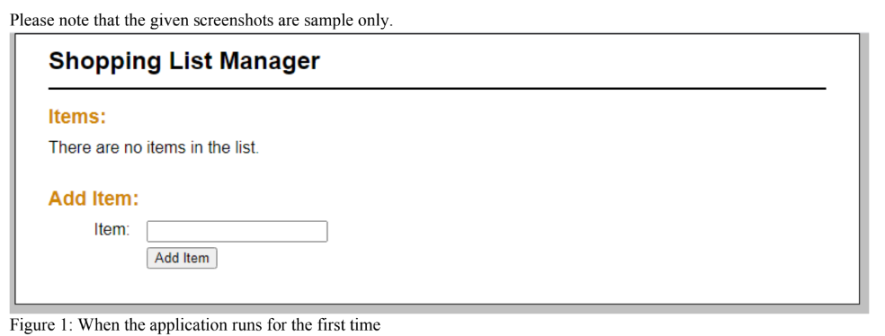 You are required to develop a PHP web application to manage a shopping list i.e. Shopping List Manager application. Thisapplication does not require items to be stored in a database, the items are lost when the user closes the application.