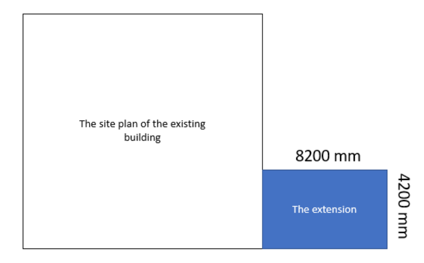 A client is planning a slab extension on his existing building, as highlighted in the plan below. Theoptions are limited to one-way or two-ways slab models only and the slab would sit on simplesupports. Put yourself as a construction expert to advise the client on the following to design themodel.