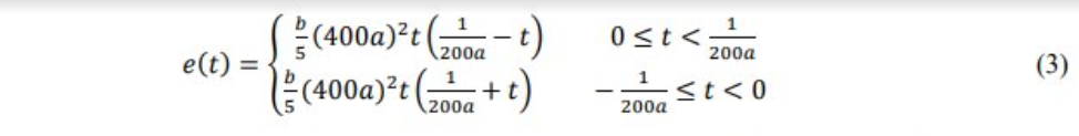 The voltage signal e(t) is periodic and has frequency 100a Hz. Over one period it is given by: